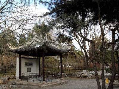 作为构成风景的基本要素之一,植物常常被用来作为营造亭建筑空间主题的重要手段。通过构架和构造上的处理,在亭建筑的屋顶或墙面上覆盖或点缀绿色植物,从而达到构筑物隐匿于植物环境当中,藏而不露,以最原始、最生态的外部形象与绿色自然环境相协调,此类型的处理手法比较适和于植物环境要求比较高的地段。亭周边的植物绿化对于亭子的意境营造具有很大的意义。绿篱就可以根据高低层次划分出多种空间,例如可以使用绿篱划分出公共外环境和室内环境间的过渡空间。树木和亭之间的配合和使用可以增强亭的景观效果,从而烘托整个景观的意境。例如高大的树木能柔和亭硬的轮廓线,还能与亭子的形体形成对比最终构成优美的构图:而低矮类型的亭子和高大树木会形成出水平与垂直的对比,体现了亲切、舒缓的气氛。