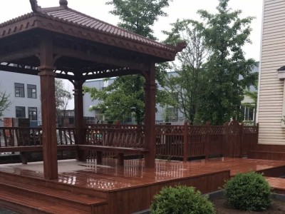搭建一个欧式亭子过程 凉亭是怎么建造的 2015年8月14日 作者:木结构 搭建一个欧式亭子过程,凉亭是怎么建造的?以下给朋友们展示下施工过程。 材料要在工程加工完,且要试装,理论和实践总会有差距,要不现场有的调整。 拆下,都是一块块部件,然后运输到现场安装,遇到木料较大的亭子,必须搞个吊机,图中用了挖机。 搭建好以后,成品的样子。 上一篇怎么自己安装一个简单的凉亭下一篇 亭子在院子的位置选择